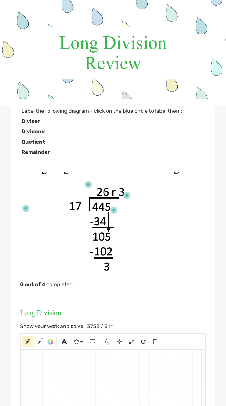 Long division labels. How to do Long Division: A Simple Step-By-Step Guide with Pictures How to do long division in six steps. 1. Review. The first step you should take is a step back. For a 4th grade student, long division is a complicated mix of different operations. In order to successfully learn how to do long division, they need to review these fundamental concepts. According to a French study, "the representation and ... The long, tangled story behind country-of-origin labels Country-of-origin labels arose in the 19th century, when Germany started to rise as an industrial power, he said. "So a lot of European countries began imposing these country-of-origin label ... NASZ - Long Division E.P | Formation Records NASZ - Long Division E.P by Formation Records, released 20 May 2022 1. NASZ & DJSS - HOLA 2. NASZ - IN THE RAIN 3. NASZ - RASTA 4. NASZ - LONG DIVISION Long Division - Math is Fun You can also see this done in Long Division Animation. Let's see how it is done with: the number to be divided into is called the dividend. The number which divides the other number is called the divisor. And here we go: 4 ÷ 25 = 0 remainder 4. The first digit of the dividend (4) is divided by the divisor.