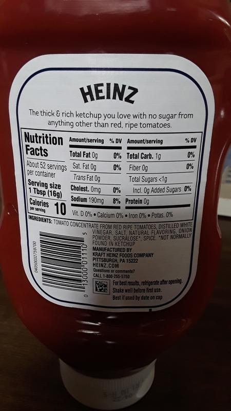 Heinz Ketchup Nutrition Label - This Nutrition In this article we'll discuss heinz ketchup nutrition label. ThisNutrition. Search; Articles Nutrients Food Lists Quizzes Sign In; Register; Home; Articles; Heinz Ketchup Nutrition Label; Heinz Ketchup Nutrition Label Published on: 04/03/2021 | Last Updated: 06/04/2021