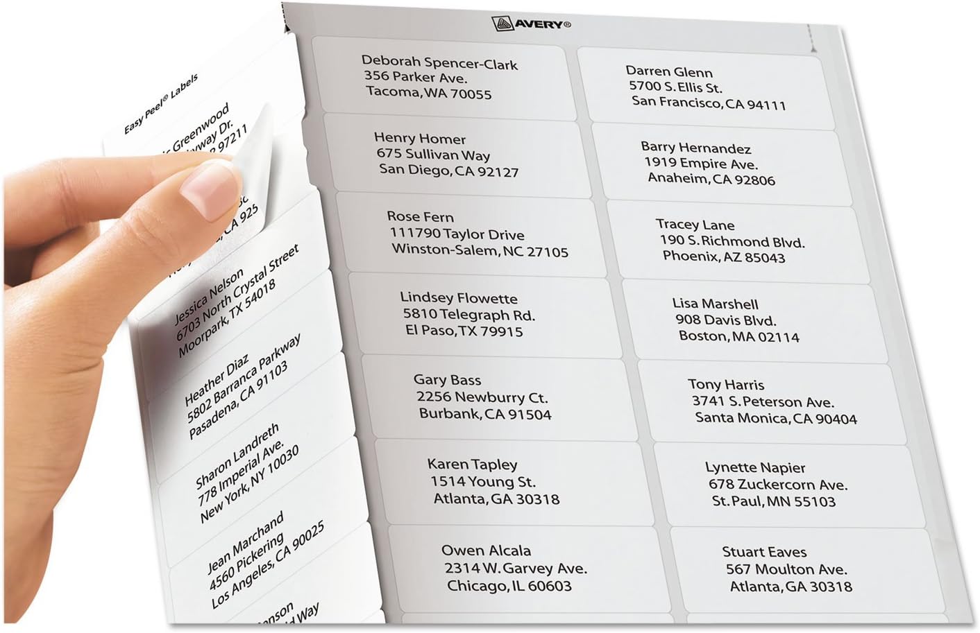AVE-5960: Avery Easy Peel White Address Labels w/ Sure Feed Technology ... Item # AVE-5960 Qty Add to Cart Easy Peel White Address Labels are great when you want to create professional labels quickly and easily. They're perfect for high-volume mailing projects, labeling bottles, Ball and Mason jars, food containers, bath and beauty products, product branding, event decorations, party favors and crafts.