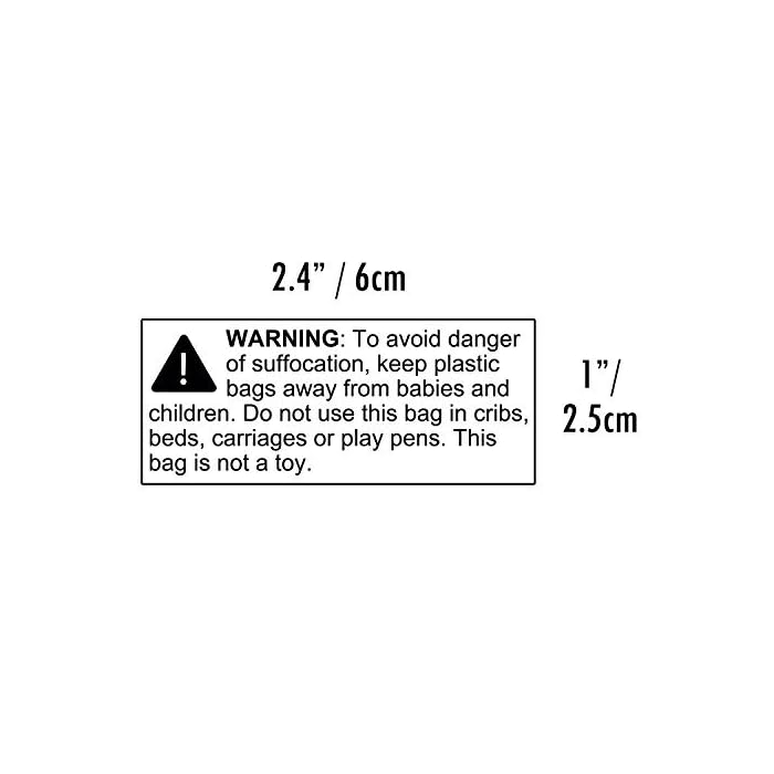 Suffocation Warning Labels for Retail Plastic Bags - Retail This also goes for eBay, Etsy and other seller platforms.These say: WARNING: To avoid danger of suffocation, keep this plastic bag away from babies and children. Do not use this bag in cribs, bed, strollers or play pens. This bag is not a toy!The size of these stickers are 1″ x 2″ and have round corners on the edges to help you peel and ...