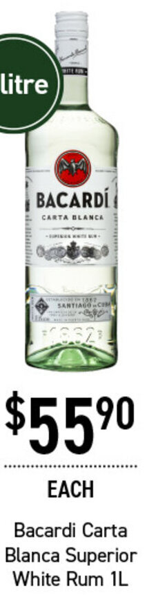 Bacardi Carta Blanca Superior White Rum 1L offer at Dan Murphy's